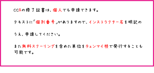 4.CCAチェンマイ本校発行の修了証書のコピー