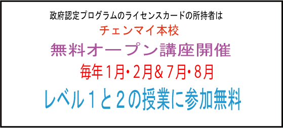 日本で学ばれた方には、チェンマイ校で無料のスクーリング(修了証書発効日から2年以内)が受けられます。